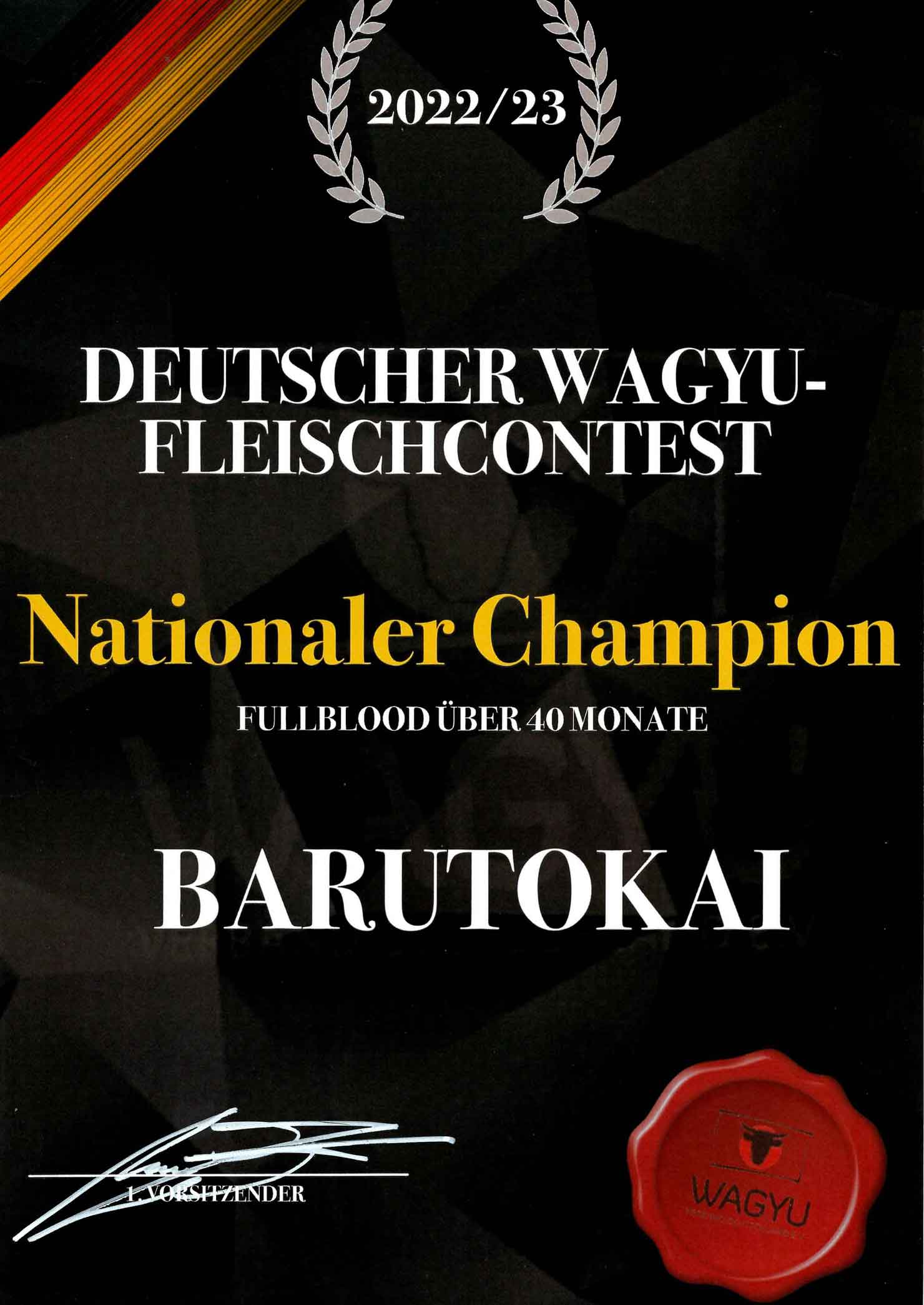 Das BARUTOKAI WAGYU ist das beste Wagyu-Beef Deutschlands 2022/23. Die Tiere von BARUTOKAI WAGYU wachsen in natürlicher Muttertierhaltung auf weitläufigen Weiden auf und erfahren ein Maximum an Tierwohl und Respekt. Und schon der erste Bissen macht deutlich: Unser Wagyu wird nicht einfach gegessen. Ihr lasst es auf der Zunge zergehen!